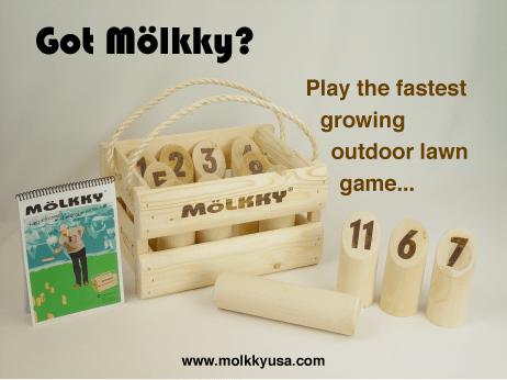 - Molky. JB nous fait découvrir sont jeu. Et Aude nous montre comment toucher une quille quasi inaccessible. Mélange fort sympathique de pétanque, billard et quilles. Un brin de calcul est nécessaire pour décider quelles cibles choisir pour gagner.